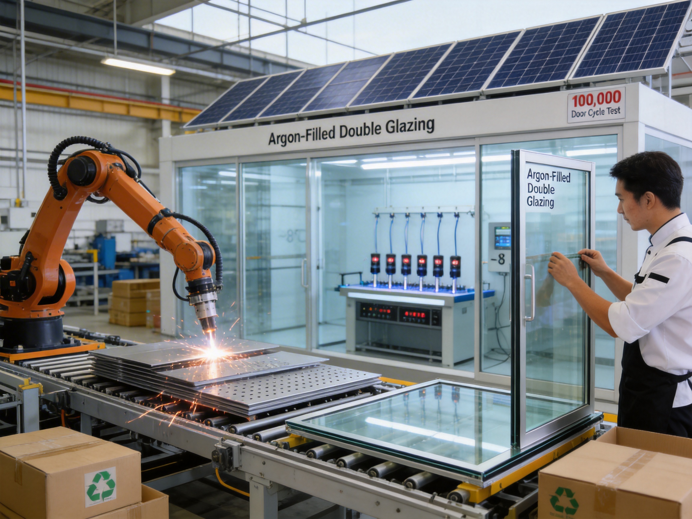 Glass Tempering: 8mm glass is heated to 620°C and rapidly cooled, increasing its strength by 5x. The double-glazing process uses argon gas between panels for thermal insulation (reducing energy use by 12%).
