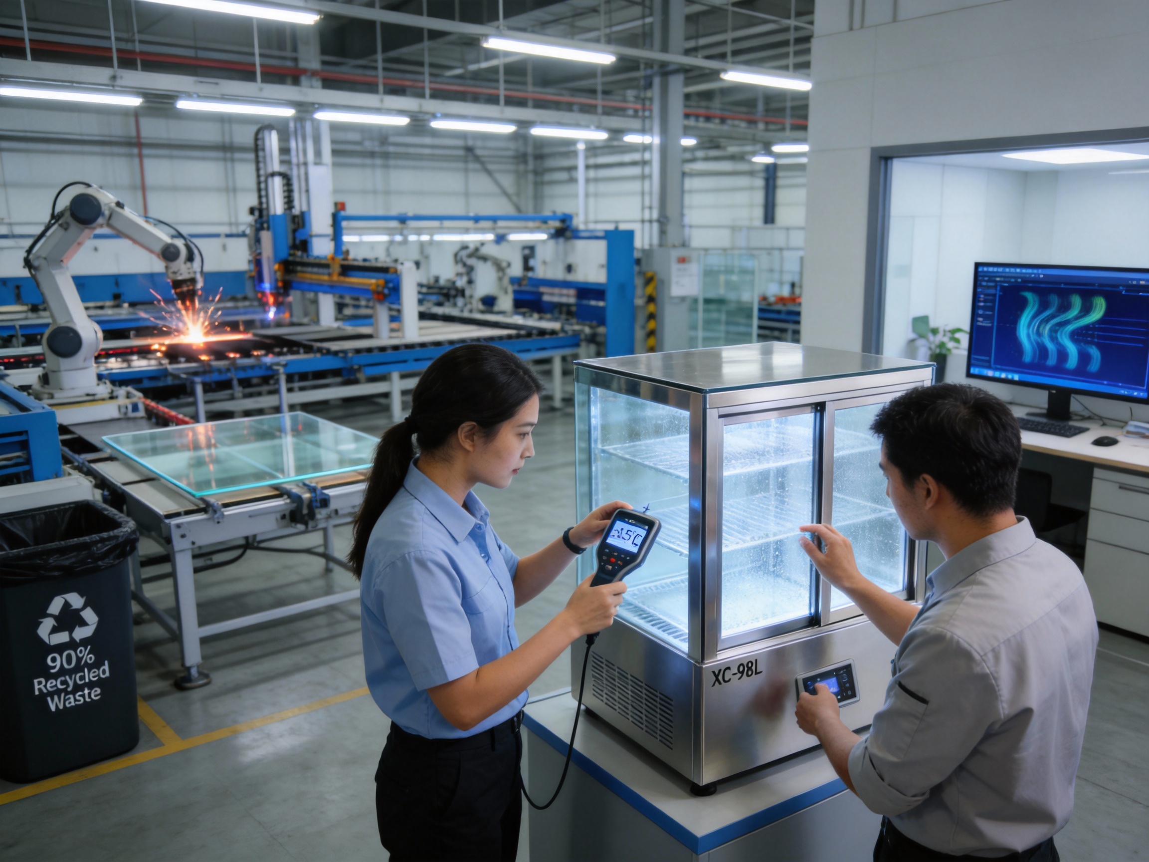 Quality control is a cornerstone of the company’s manufacturing process. Every XC-98L unit goes through a multi-stage inspection process before it leaves the factory. The first stage is a visual inspection of components (glass, shelves, compressor, etc.) to ensure they meet specifications. Next, the unit is assembled and undergoes a leak test for the refrigerant system—this involves pressurizing the system with nitrogen and checking for leaks using a soap solution or electronic detector. A leak-free system is critical for performance and safety.