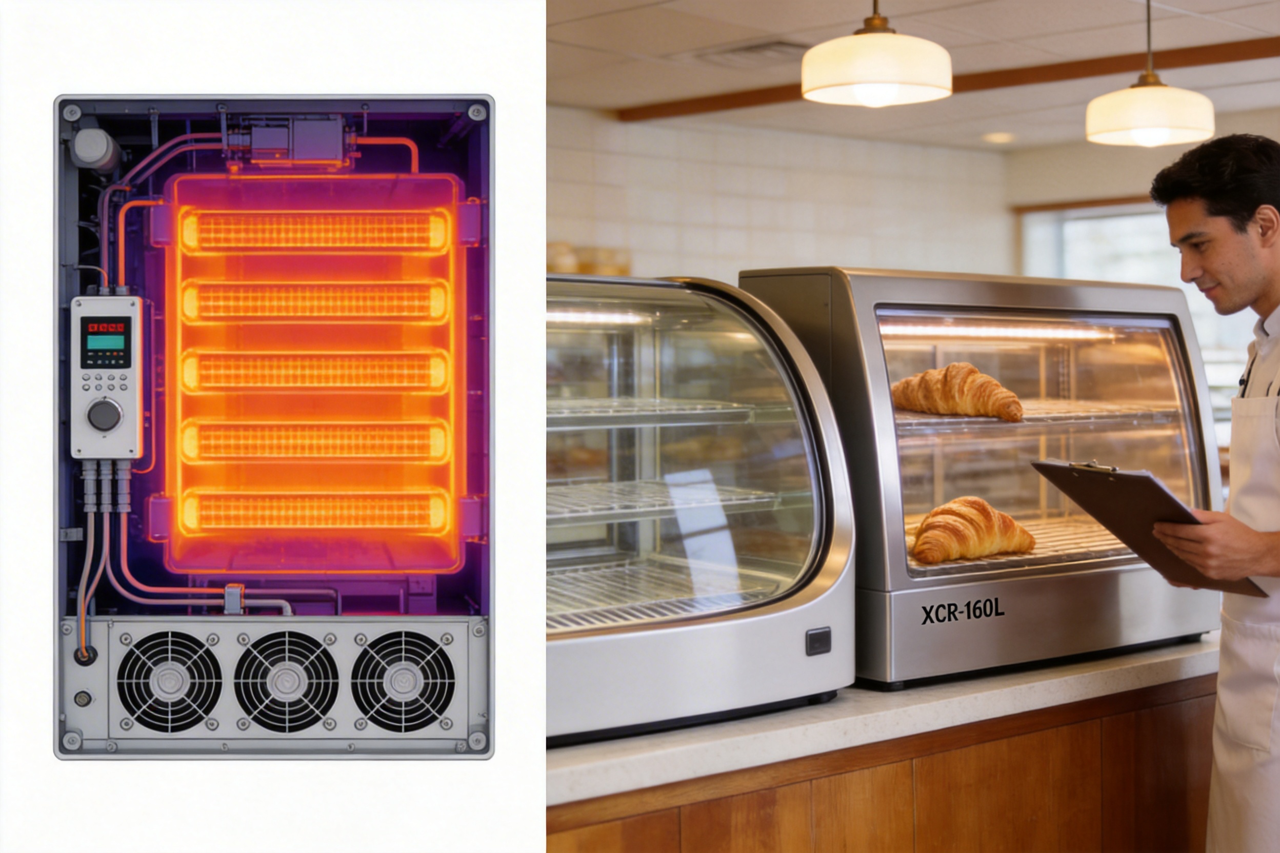 Urban Bakery Café, a 500-square-foot establishment in a busy metro area, previously used a generic display warmer with flat glass and inconsistent heating. Customers complained about dry croissants and underheated muffins, leading to 15% product waste monthly. After switching to the XCR-160L:
