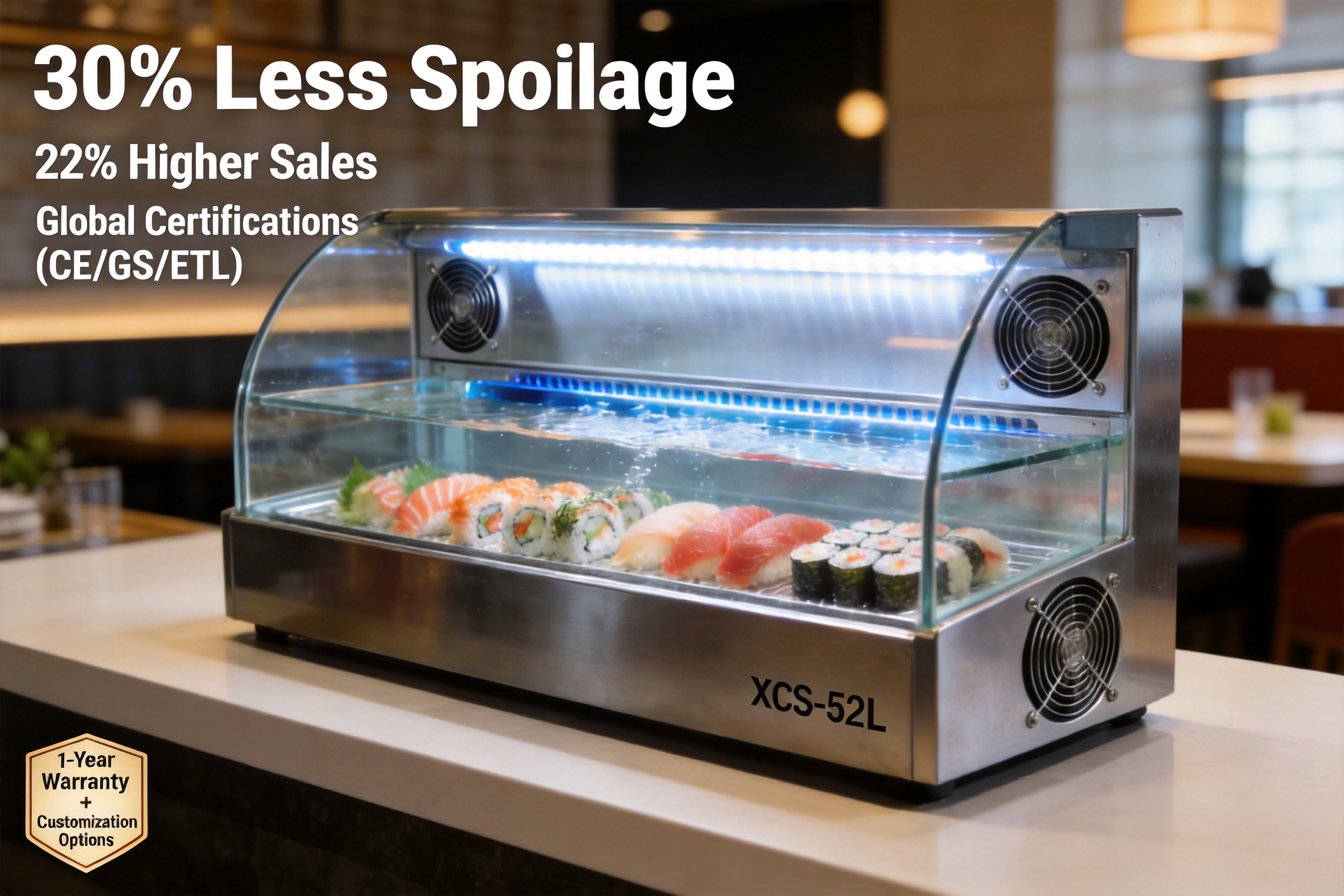 In the global food service landscape, sushi has evolved from a niche Japanese delicacy to a mainstream favorite, with annual sales exceeding $20 billion in the United States alone and growing at a 5% CAGR through 2028 (Smith, 2021). For sushi restaurants, cafes, food trucks, and even grocery stores, the ability to display sushi in a way that preserves freshness, enhances visual appeal, and complies with food safety regulations is non-negotiable. This is where countertop sushi showcases play a critical role—and the XCS-52L stands out as a leading solution in this category. Designed for small to medium-sized food businesses, this showcase combines innovative features, precision engineering, and uncompromising quality to address the unique challenges of sushi display. In this guide, we will explore the XCS-52L’s key advantages over competitors, the manufacturing excellence behind its design, real-world use cases, and answers to common questions from food service professionals.