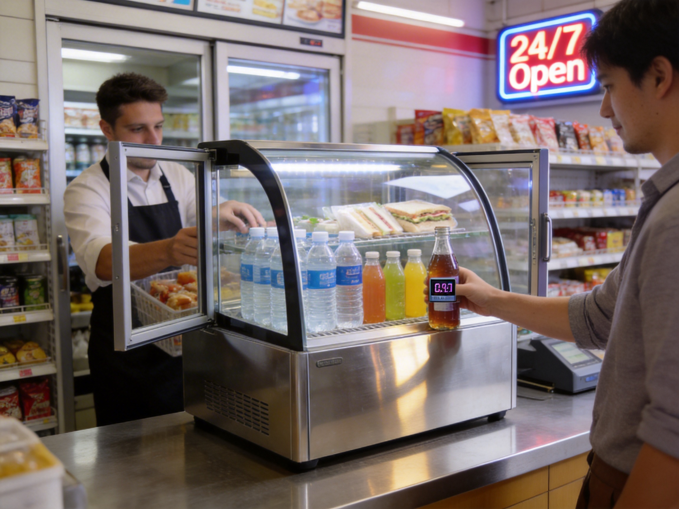 Convenience stores need to display a variety of beverages (bottled water, juices, soft drinks) and snacks (sandwiches, salads) in an accessible location. The XCW series’ front and back sliding doors allow customers to grab products from the front while staff restock from the back. The 248L model is ideal for larger convenience stores, as it can hold up to 248 liters of products.