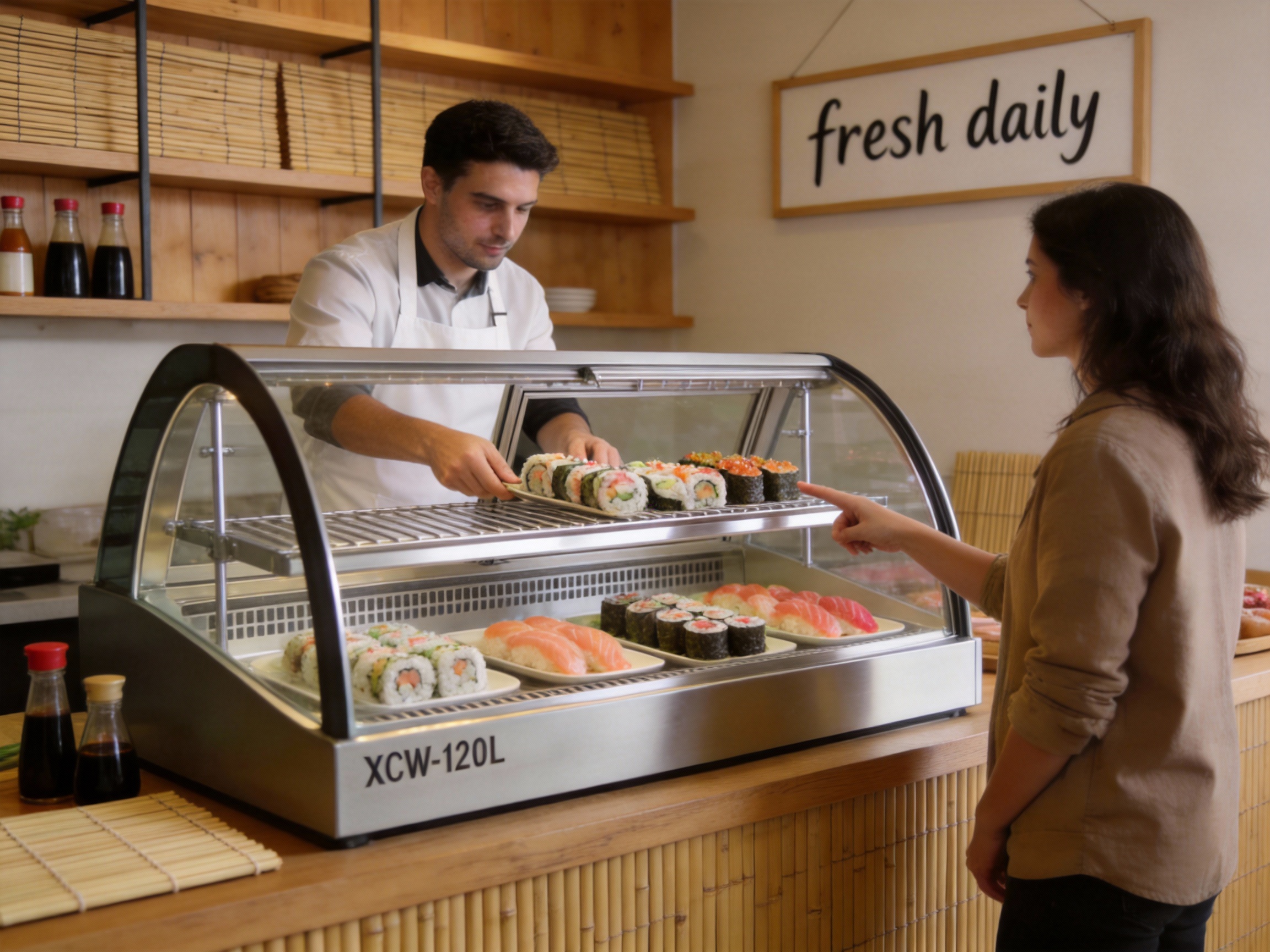Sushi shops need to keep sushi rolls and sashimi at cool temperatures to maintain freshness and safety. The XCW-120L’s ventilated cooling system ensures uniform temperatures throughout the cabinet, while the double glass prevents condensation, so customers can see the sushi clearly. The adjustable shelves allow sushi chefs to display different sizes of sushi rolls and sashimi plates, and the back sliding doors make it easy to restock without disturbing customers. For example, a sushi shop in Tokyo uses the XCW-120L to display its sushi rolls. The shop reports that the cooler has increased customer satisfaction by 10% due to the clear display and fresh-tasting sushi.