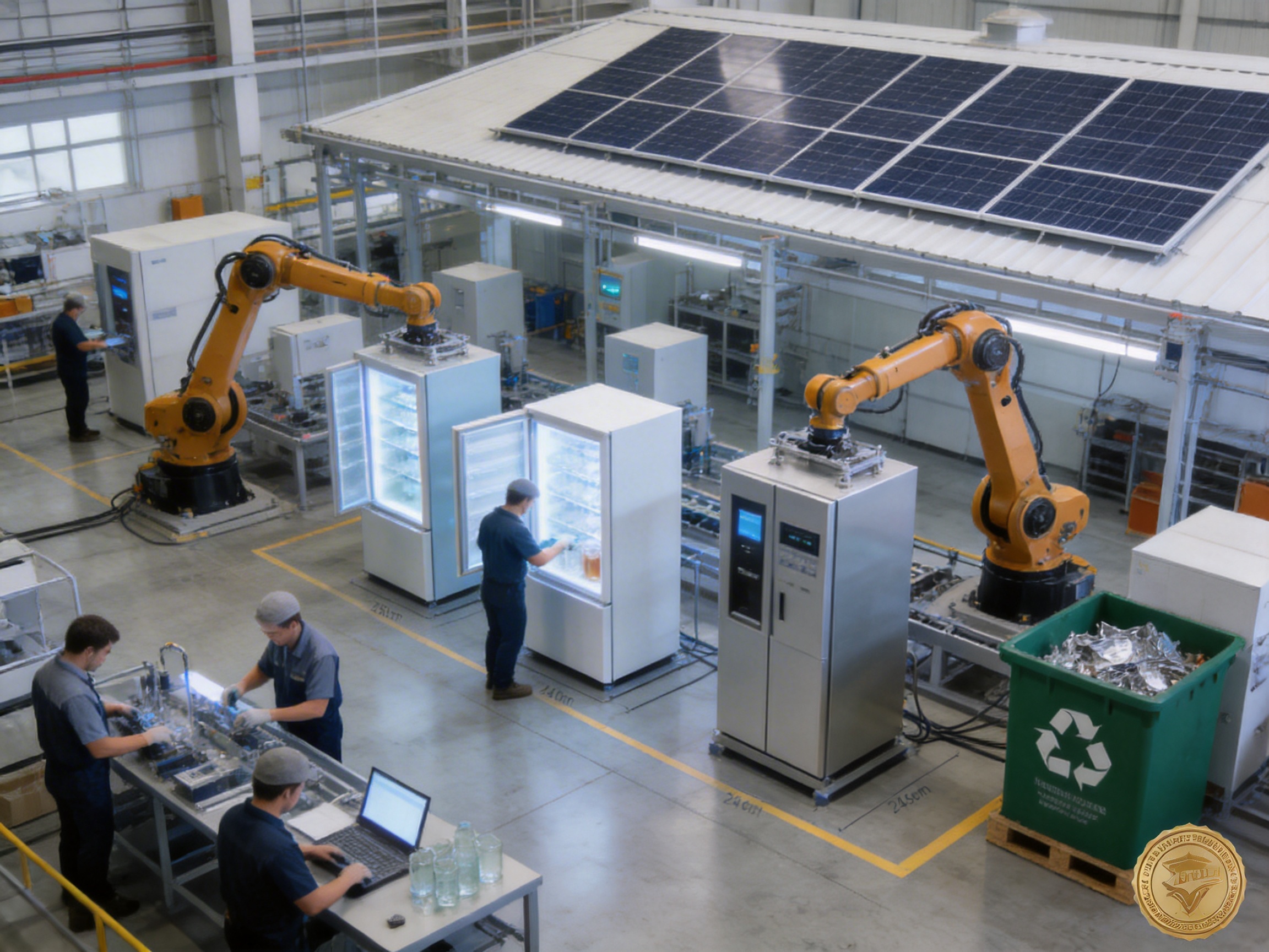 XiangChi’s 40,000-square-meter factory features automated production lines for cabinet assembly, glass cutting, and refrigerant charging. The cabinet assembly line uses robotic arms to ensure precision and consistency, while the glass cutting line produces four-sided glass panels with minimal waste. The refrigerant charging process is fully automated, reducing the risk of human error and ensuring compliance with safety standards.