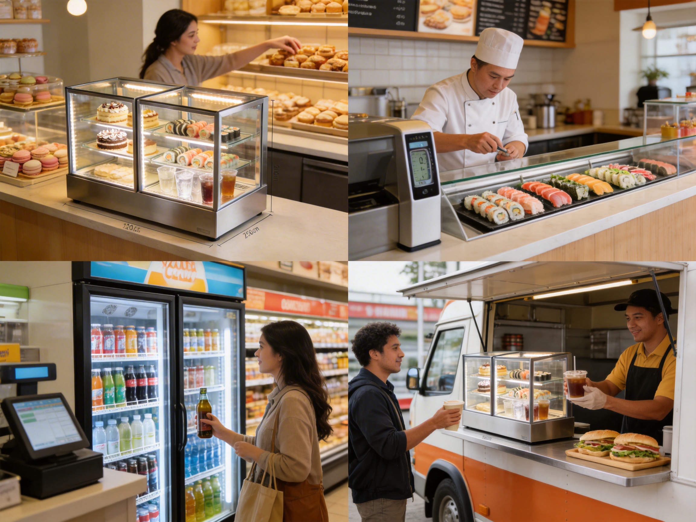 Food trucks face extreme space constraints, and the XCW-120LS’s compact footprint makes it an ideal solution. It fits on the truck’s counter and can be powered by a standard generator or battery. A food truck in New York uses the XCW-120LS to display its cold sandwiches and iced coffee, and customers appreciate the convenience of being able to see the products before ordering.