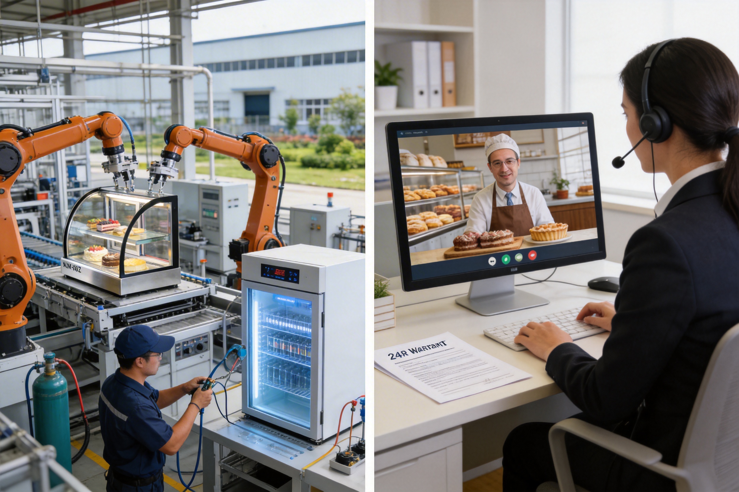 The R&D process includes: - Conducting surveys with bakery owners and staff to identify common challenges. - Testing prototype components (e.g., LED lights, defrost systems) in real-world kitchen environments. - Collaborating with materials scientists to develop durable, eco-friendly materials. - Consulting with food safety experts to ensure compliance with global regulations.