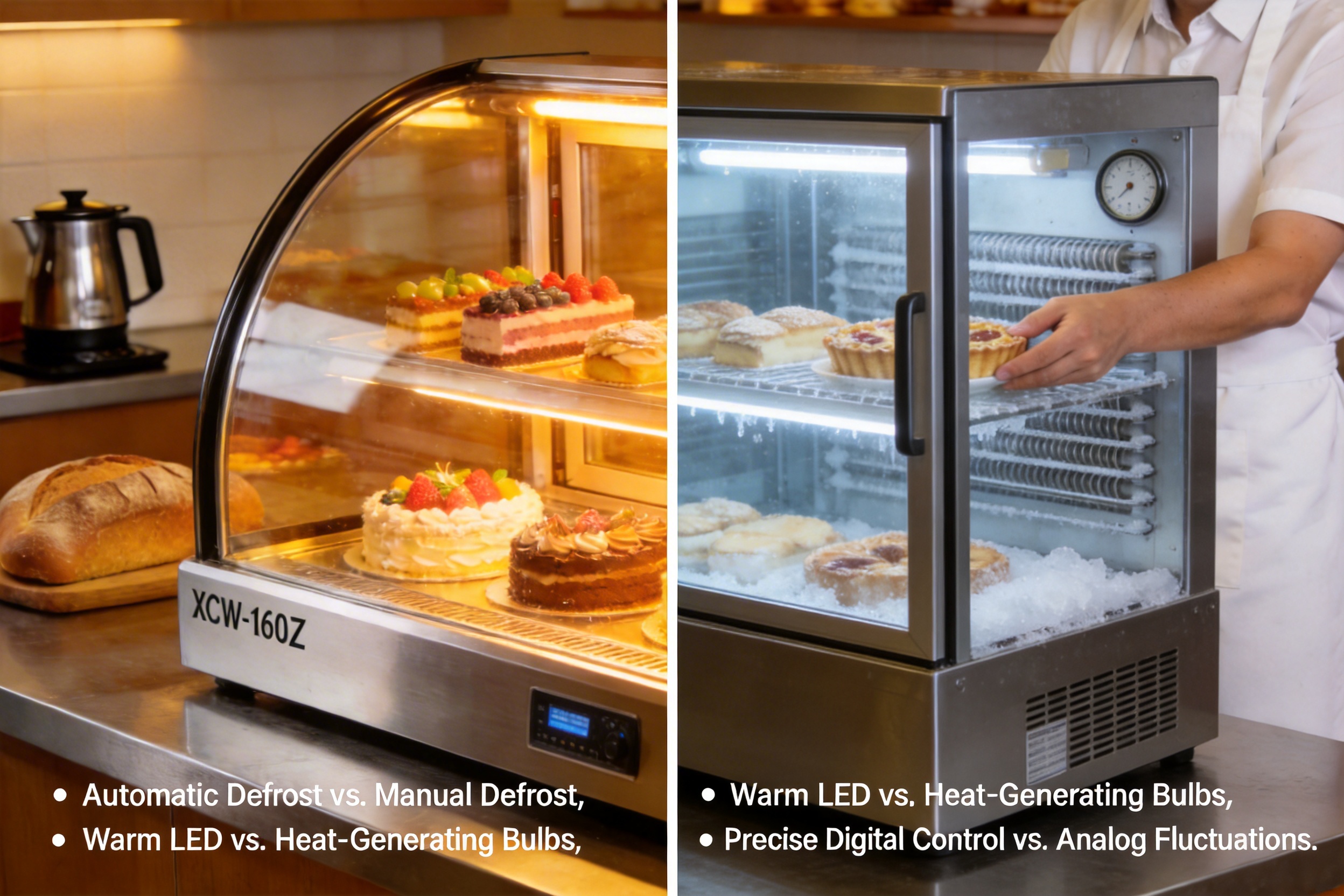 In the competitive landscape of food service—whether a bustling bakery, cozy café, or high-end pastry shop—visual appeal and product freshness are non-negotiable. Customers are drawn to vibrant, well-lit displays of cakes, pastries, and desserts, but maintaining that freshness while showcasing products effectively requires more than just a glass case. Countertop display coolers are the backbone of this balance, yet many models fall short: they lack sufficient lighting to highlight products, require manual defrosting that disrupts operations, or fail to maintain consistent temperatures that preserve food quality. Enter the Automatic Defrost LED Lighting Suit for Cake Countertop Display Cooler (model XCW-160Z)—a game-changer designed to address these pain points and set a new standard for countertop cooling solutions.